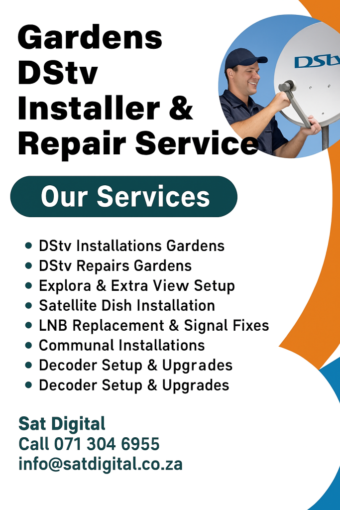 Need DStv in Gardens, Cape Town? Sat Digital 071 304 6955 offers fast, affordable DStv installation, Explora upgrades, dish repairs & reliable signal solutions.
